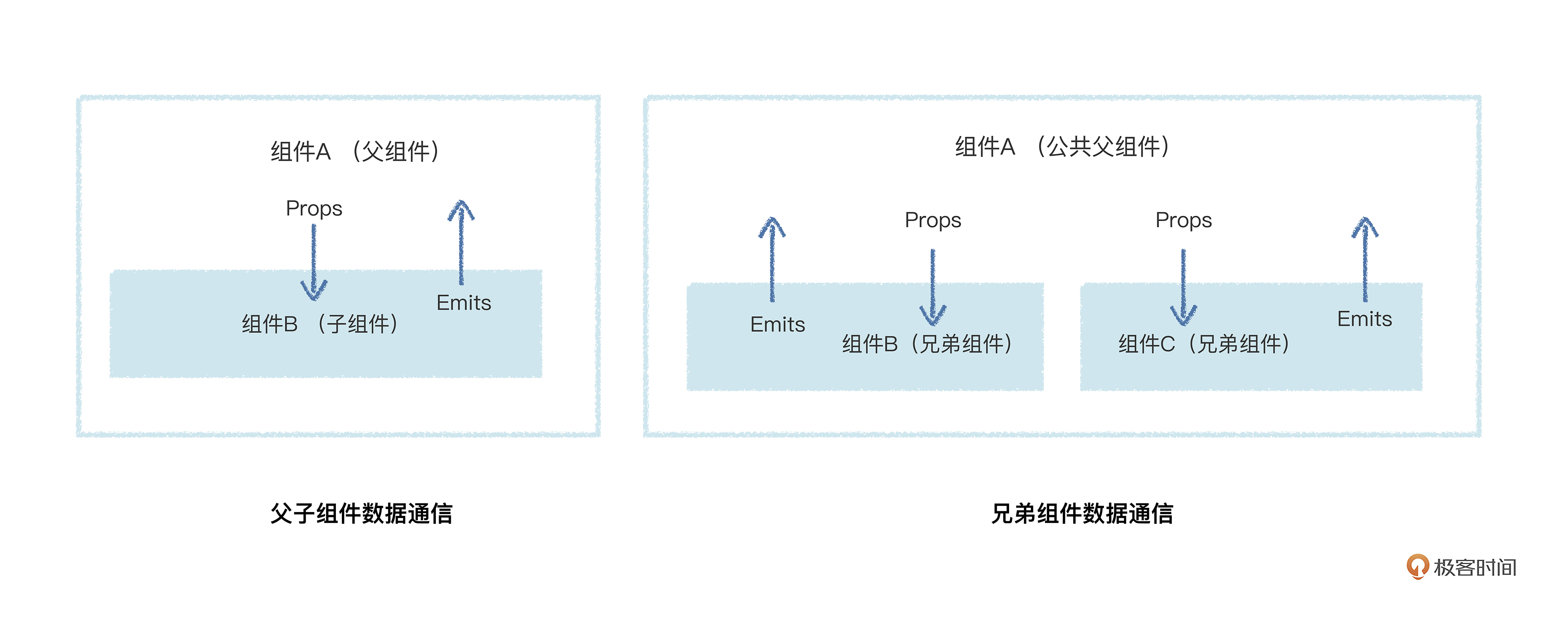 如果你能提到这个问题,说明你上节课掌握得很不错,但是注意了,我们这节课讲的是数据跨组件通信,跟响应式不是一个维度上的技术点。