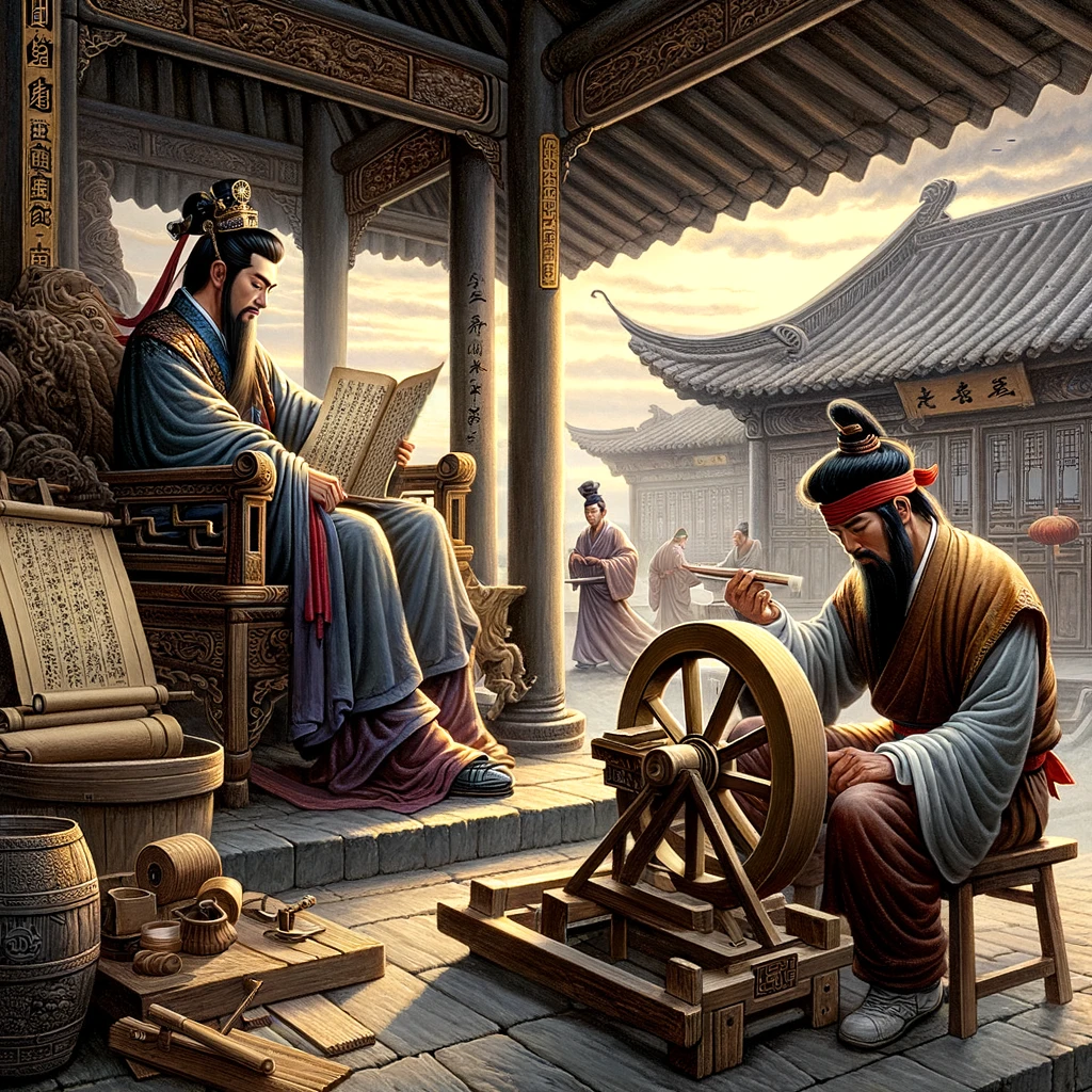 齐桓公在堂上读书,轮扁在堂下砍削车轮。他问齐桓公在读什么书。齐桓公说是圣人的书。轮扁说,那全是古人的糟粕!齐桓公就很不高兴,非要让他说出个道理。