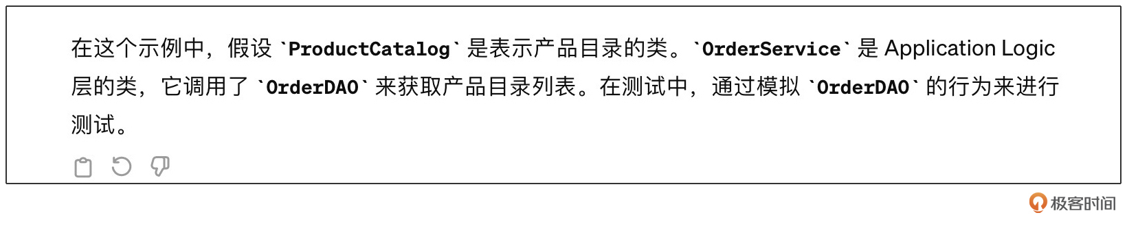 请注意观察,上述代码中对于测试策略的应用,是符合我们对于测试工序的描述的。在确认测试代码没有问题之后,我们就可以通过与LLM的交互配合,完成生产代码的编写。这个在前面的课程里已经给过了例子,就不再重复了。