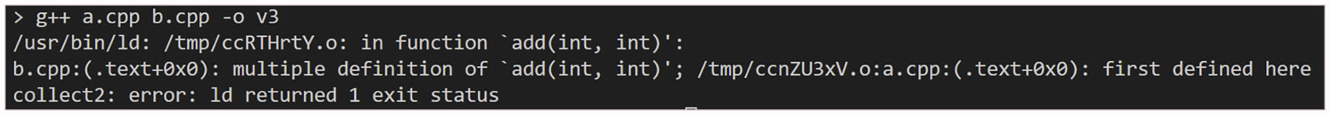 比如我们在a.cpp中也定义一个add函数,然后进行编译、链接。