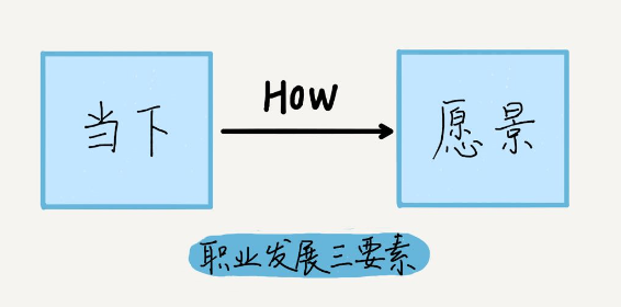 职业发展问题,有三个要素:当下(AsIs)、愿景(ToBe)和过程(How)。所以,你需要思考下面三个问题: