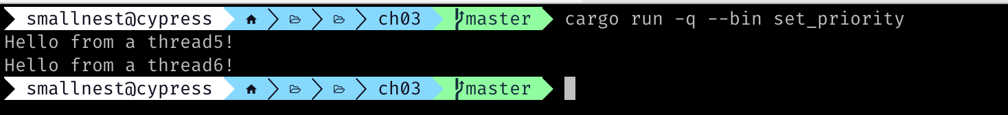 事实上, thread_priority::ThreadBuilderExt 还可以扩展 std::thread::Builder,这样我们就可以直接使用 std::thread::Builder 来设置线程的优先级了: