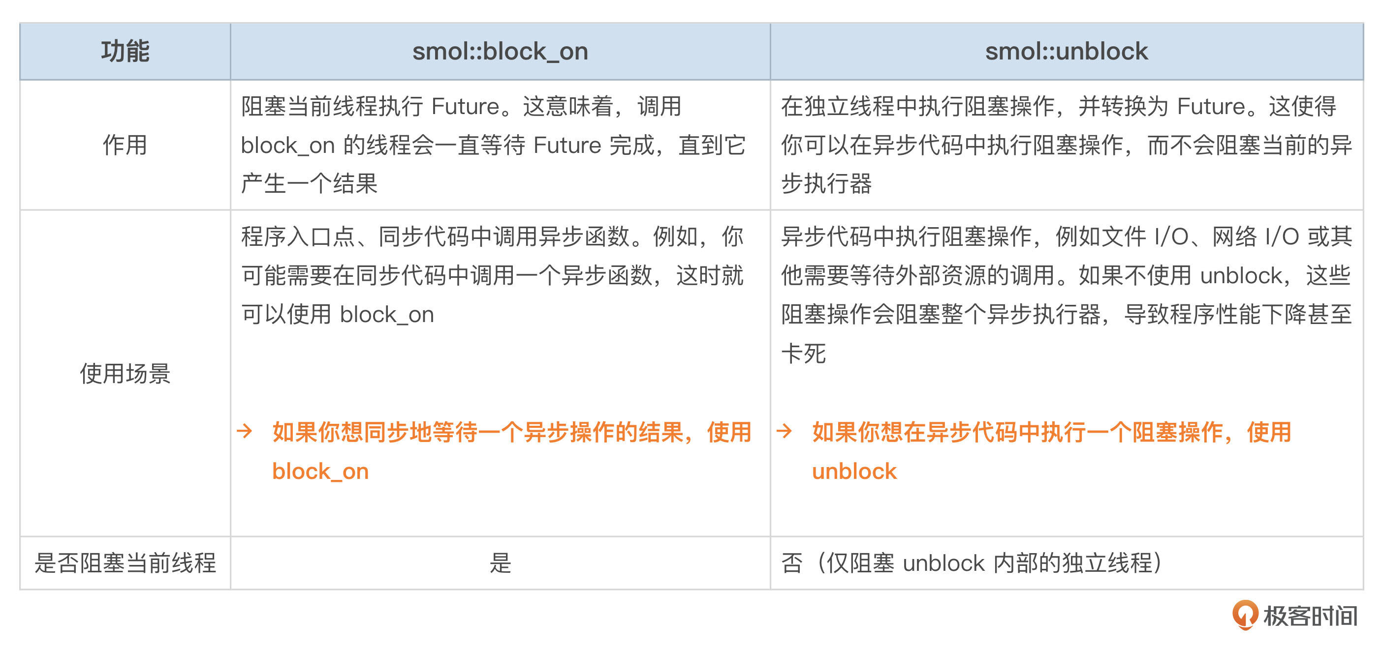 也可以使用 block_on 启动一个任务,然后让当前线程等着,直到任务跑完拿到结果。用 block_on 这个函数就跟启动一个线程然后立刻等它结束差不多,只不过启动的是异步的任务。