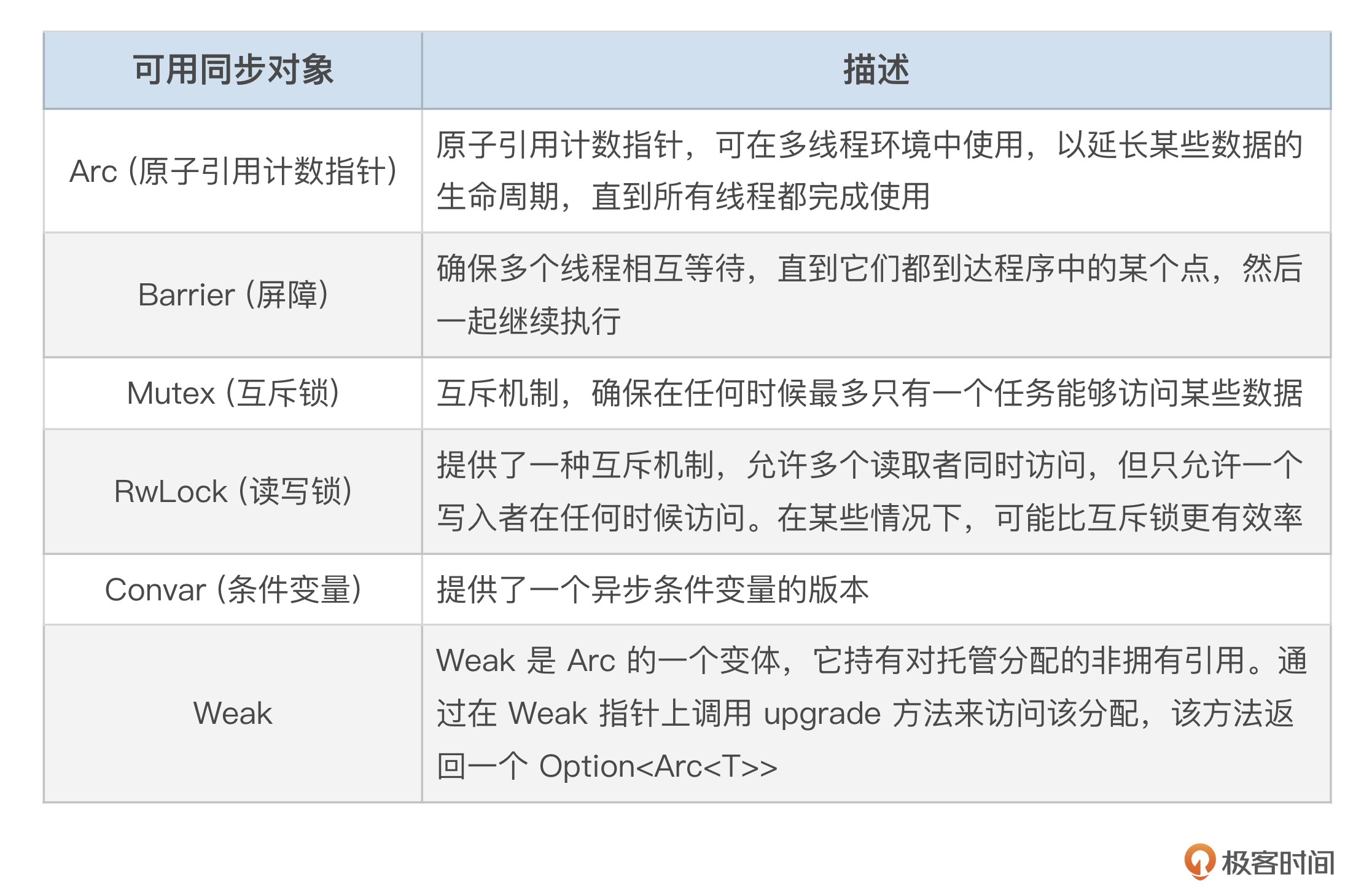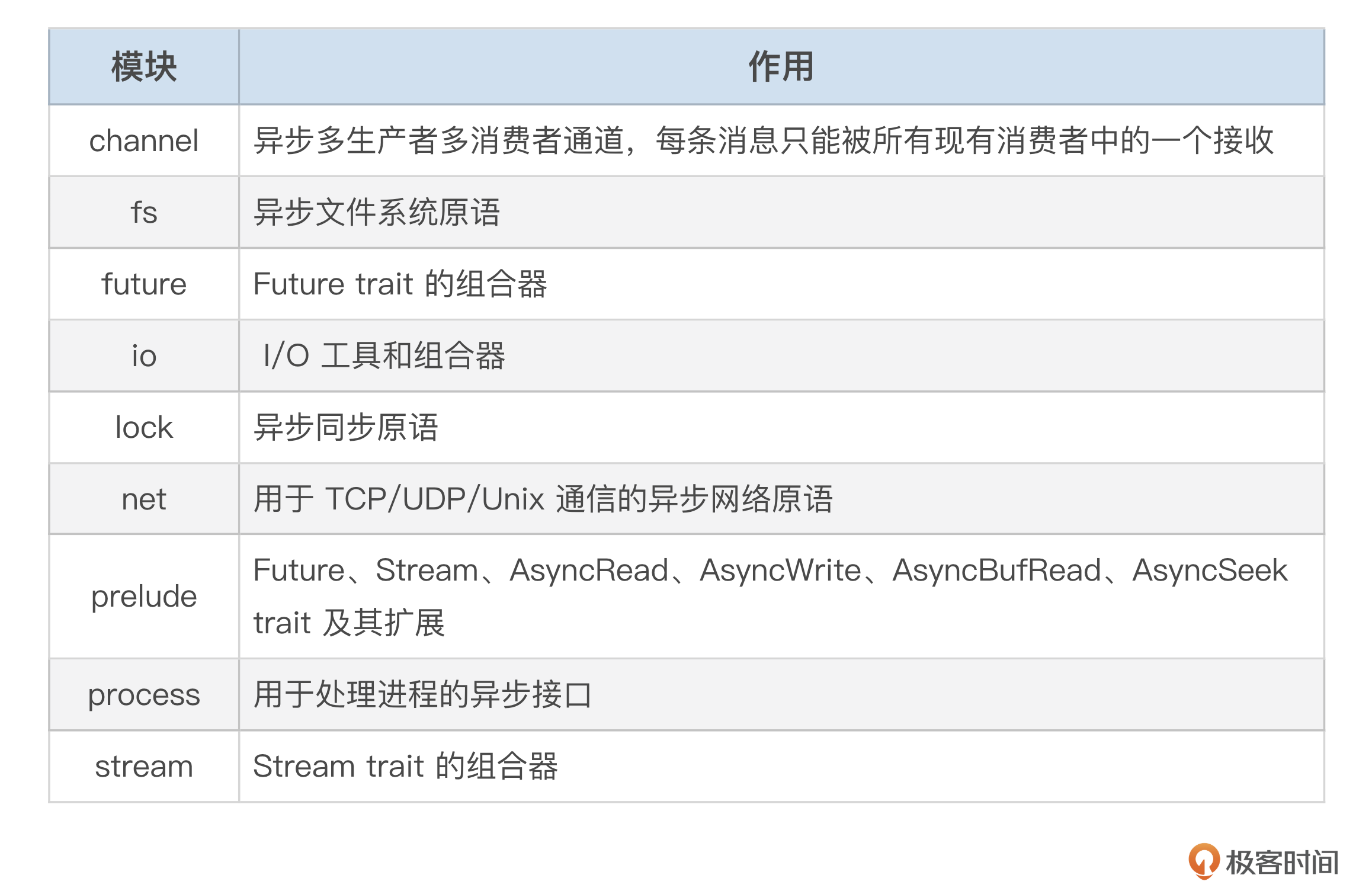 这个模块是std::sync的异步版本。事实上我们还没有开始介绍标准库的同步原语,但是我们不妨先了解一下它的异步版本,不熟悉也没有关系,大概了解下,后面学习了之后再来回顾。