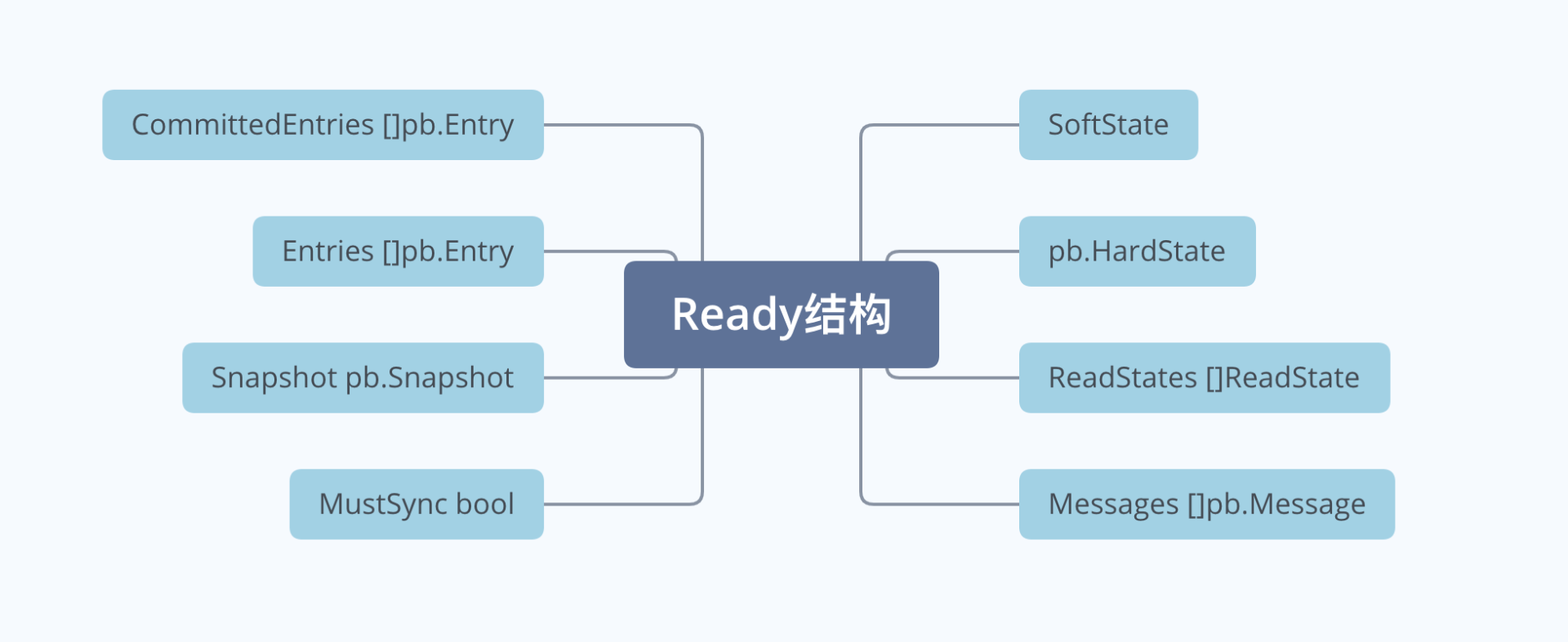 - Ready,Raft状态机输出接口,它的返回是一个输出Ready数据结构类型的管道,应用需要监听此管道,获取Ready数据,处理其中的各个消息(如持久化未提交的日志条目到WAL中,发送消息给其他节点等);