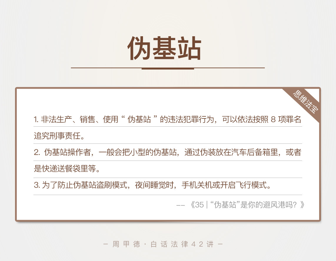 今天的内容主要就是这些。关于伪基站,或者防盗刷的手段,你有什么疑惑或者相关经验吗?欢迎留言和我分享,也欢迎你把这篇文章分享给你的亲朋好友。伪基站不能成为任何犯罪的避风港。