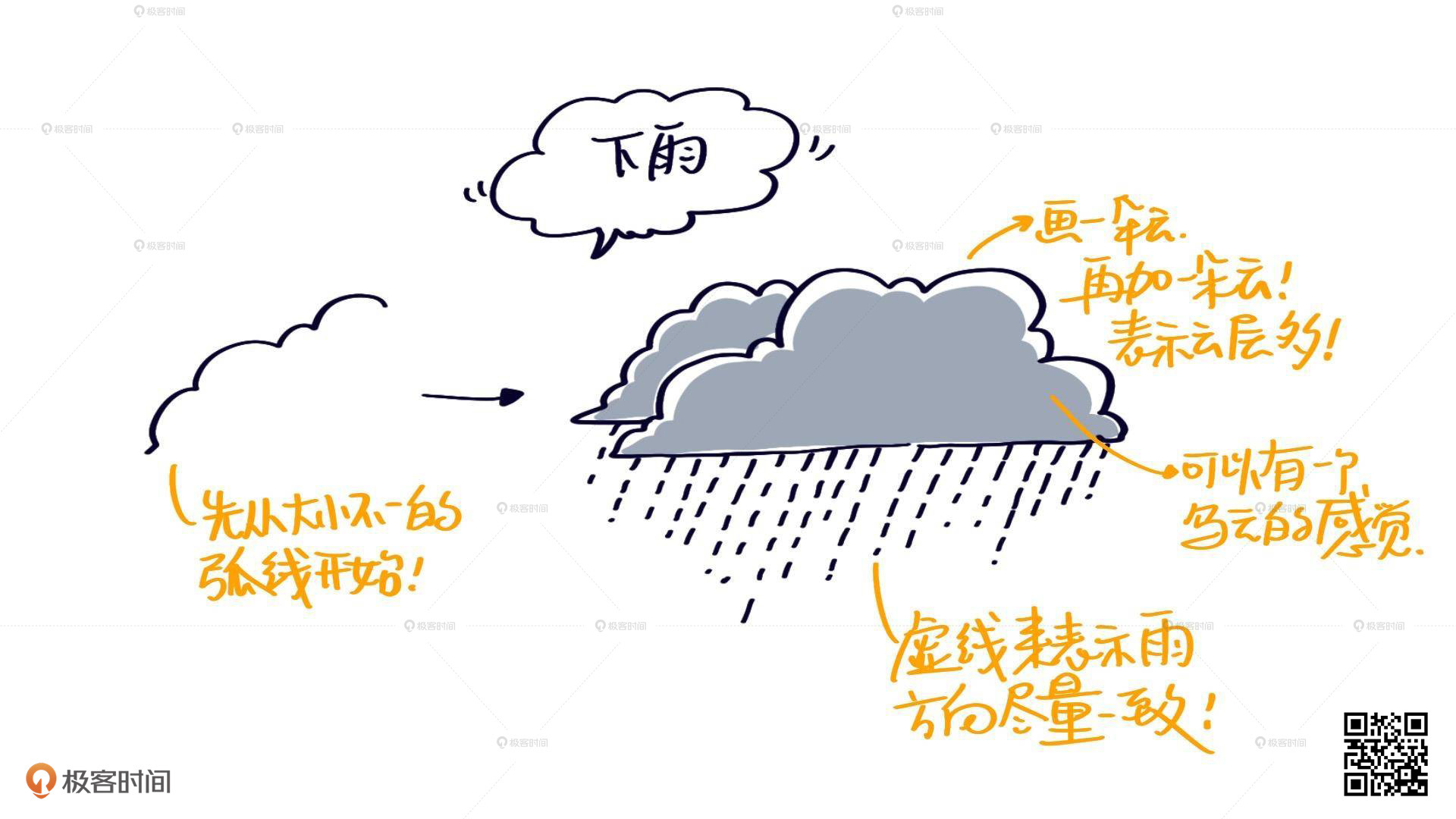 临出门的时候,李雷抬头望向窗外,发现外面乌云密布,要下雨了,所以可能还会有雨伞这个视觉图标出现在我的笔记中。