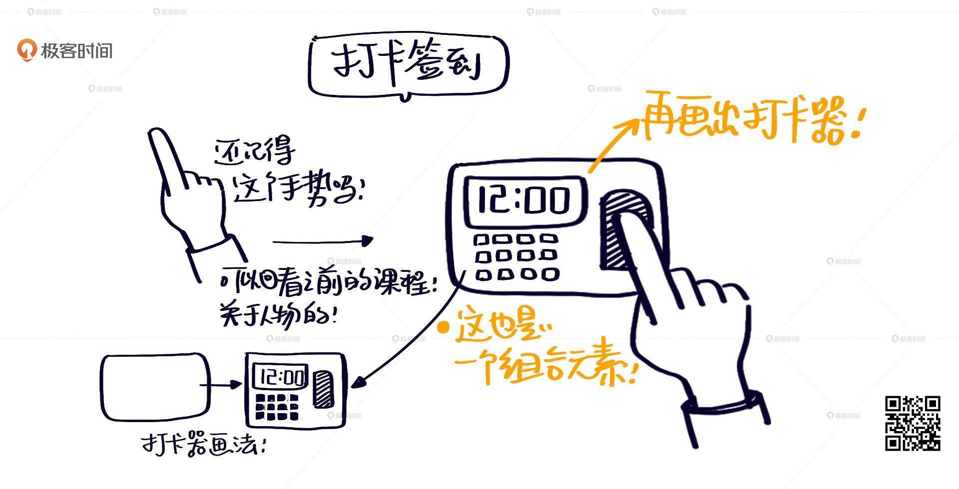 我们就拿一个“普通上班族李雷的一天”来举例子吧。看看一天之中他接触到的视觉图标有哪些?这些视觉图标又是由哪些基础元素组成的?在这个过程中,你也可以想想,如果你给“自己的一天”做一个视觉笔记,你会记录下什么东西呢?这些视觉元素又为你的“剧本”助力了什么?