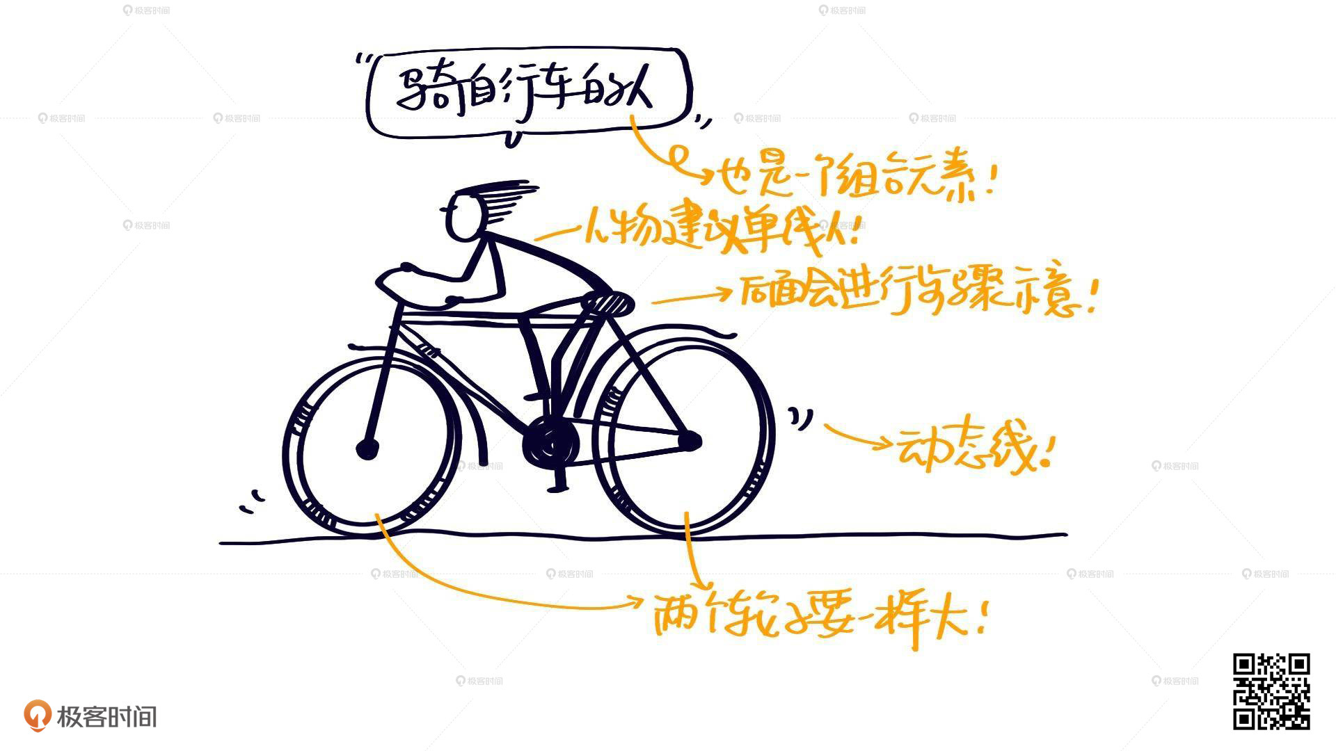最后一个骑自行车画起来可能难一些,因为骑自行车是一个组合元素,结合了人和自行车两种元素来表达内容。