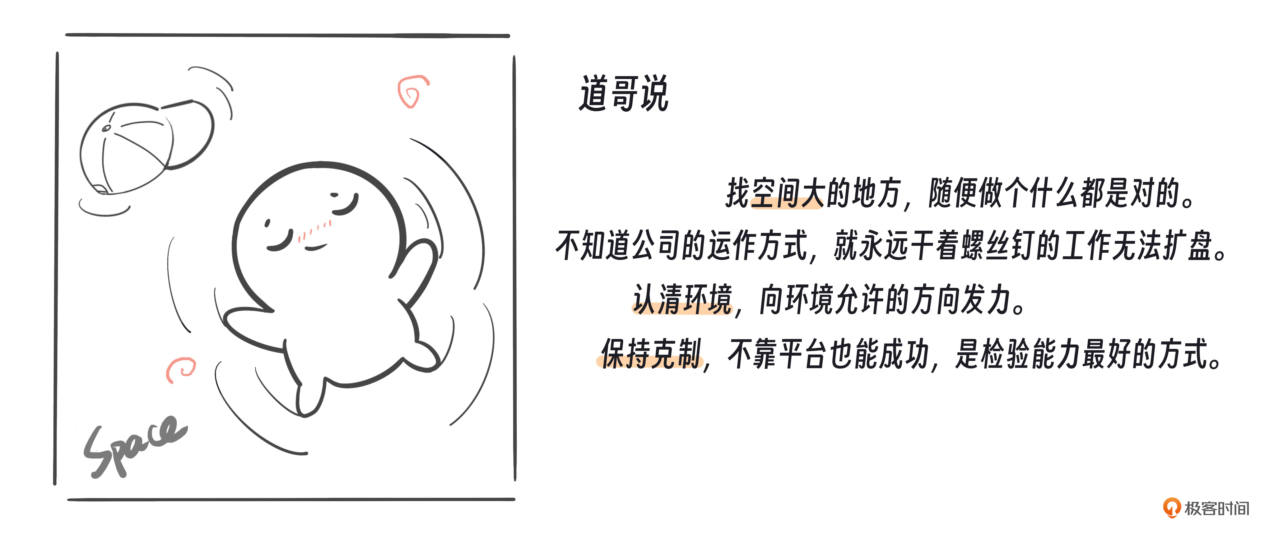 极客时间:所以也是要抬头看看身边的环境,认清环境之后去发力。说到环境,关于平台和个人的关系,你是怎么理解的?