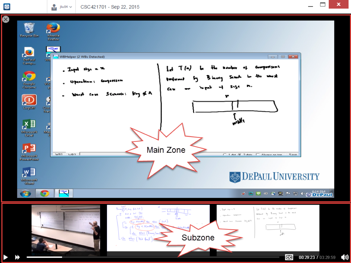 DePaul大学的网络教学系统,就是在老师上课的时候,用摄像头把老师讲课的整个过程都录制成视频,同时也会用特殊的软件,把当时电脑屏幕上显示的内容,和白板上写的内容,都录制下来。