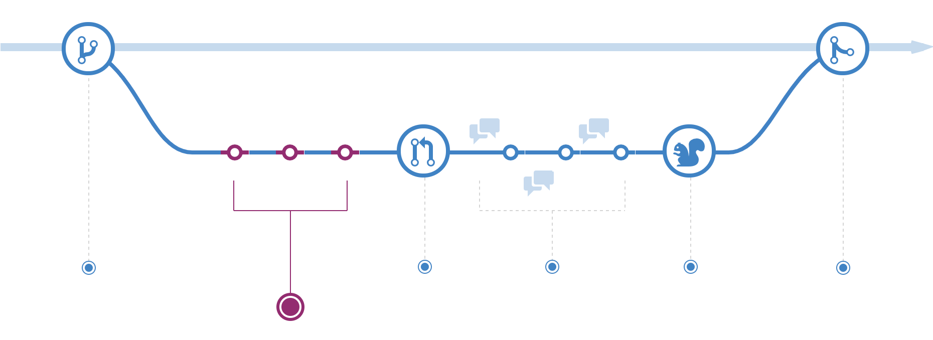 - 在合并分支之前,对代码有审查,自动化测试要能通过。