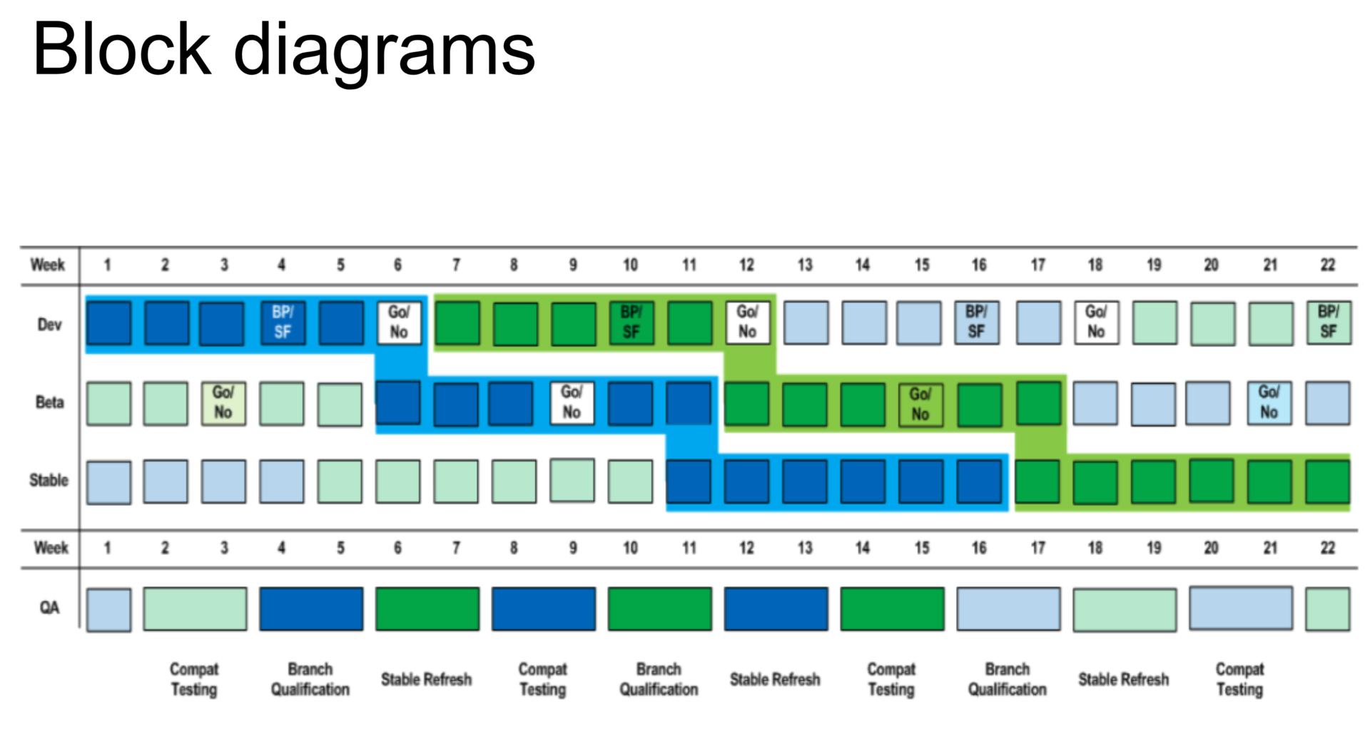 - Beta 版本或发布版本(The Beta Channel or Release Channel):是给外部用户使用的测试版本,并不保证稳定,但是用户可以提前体验新功能,也能帮助开发团队及时发现Bug。
