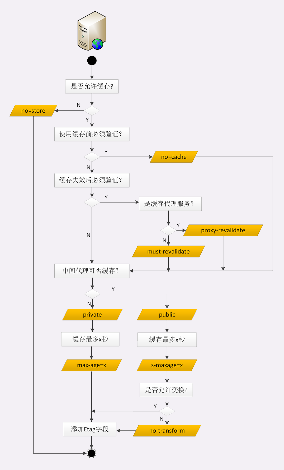 下面的流程图是完整的服务器端缓存控制策略,可以同时控制客户端和代理。