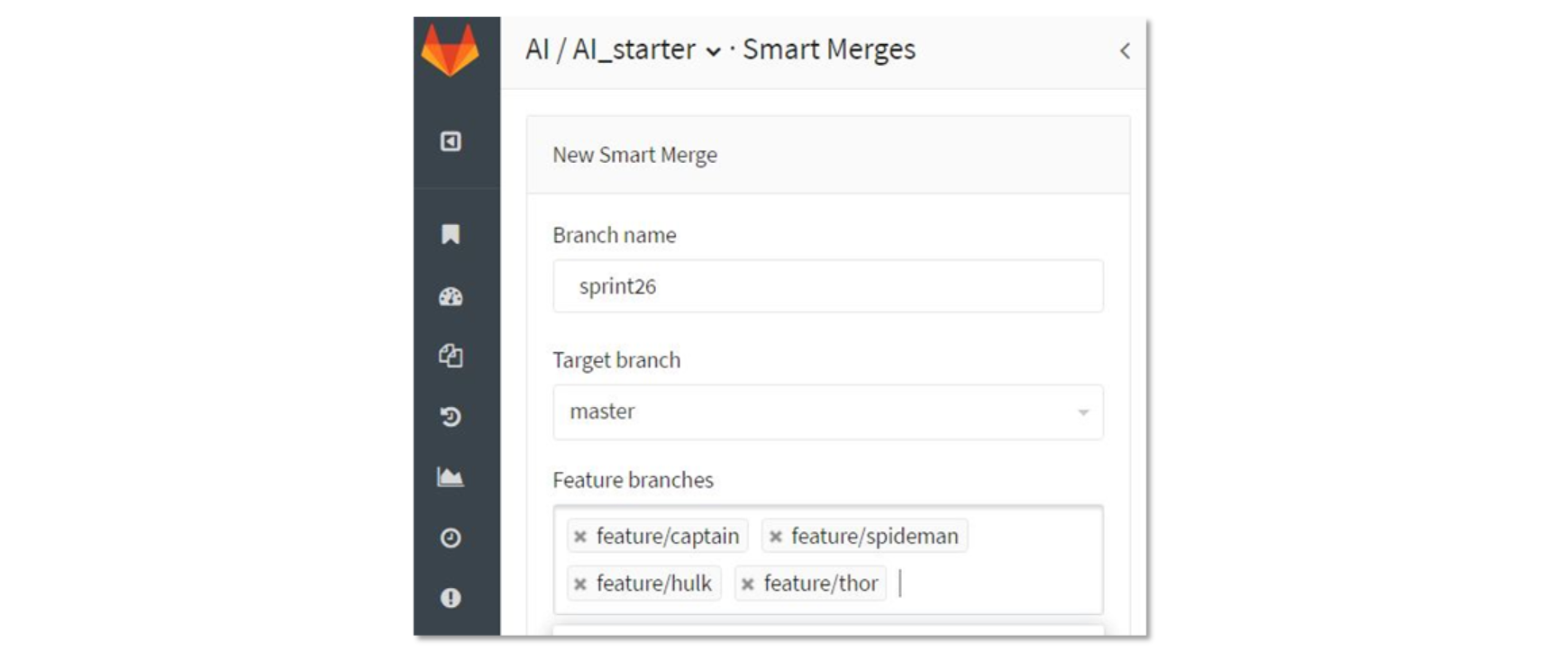 这时,资深测试工程师“黑寡妇”也没闲着,开始查看起本周计划完成的issue,整理出功能点、性能要求和粗粒度的接口列表,基本明确了测试范围。随后,她在公司GitLab平台上为本周迭代设置好了“Smart Merge”,如图2所示。