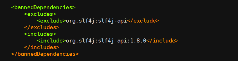 该代码检查的逻辑是,只允许使用版本大于等于 1.8.0 的 org.slf4j:slf4j-api 依赖,否则将会出现如下错误: