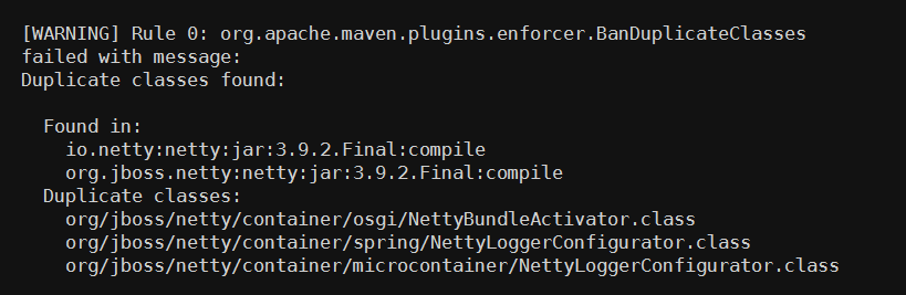 当激活了 banDuplicateClasses 规则之后,Enforcer检查,便会有如下的报错: