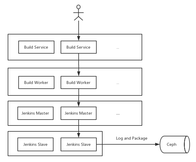 携程的解决思路是在 Jenkins 上面再封装两层: Build Service 暴露构建的 HTTP 接口,接收请求后将任务丢给异步队列 Build Worker,Build Worker 根据不同的策略将任务分发给符合条件的 Jenkins Master。