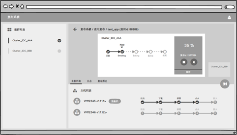 - 未发布时:应该显示这个应用历史发布的一个过程,也就是整个版本演进的路线图,以及当前各集群、各服务器上具体版本的情况。