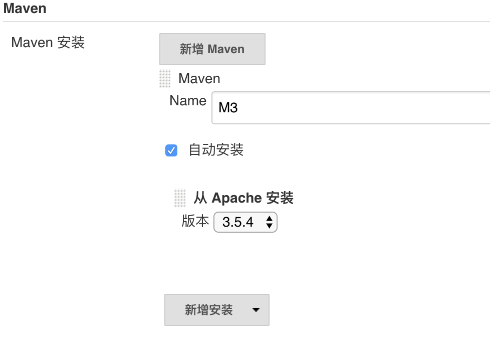 进入系统管理->全局工具配置页面,安装Maven,并把名字设置为M3。如图1所示。