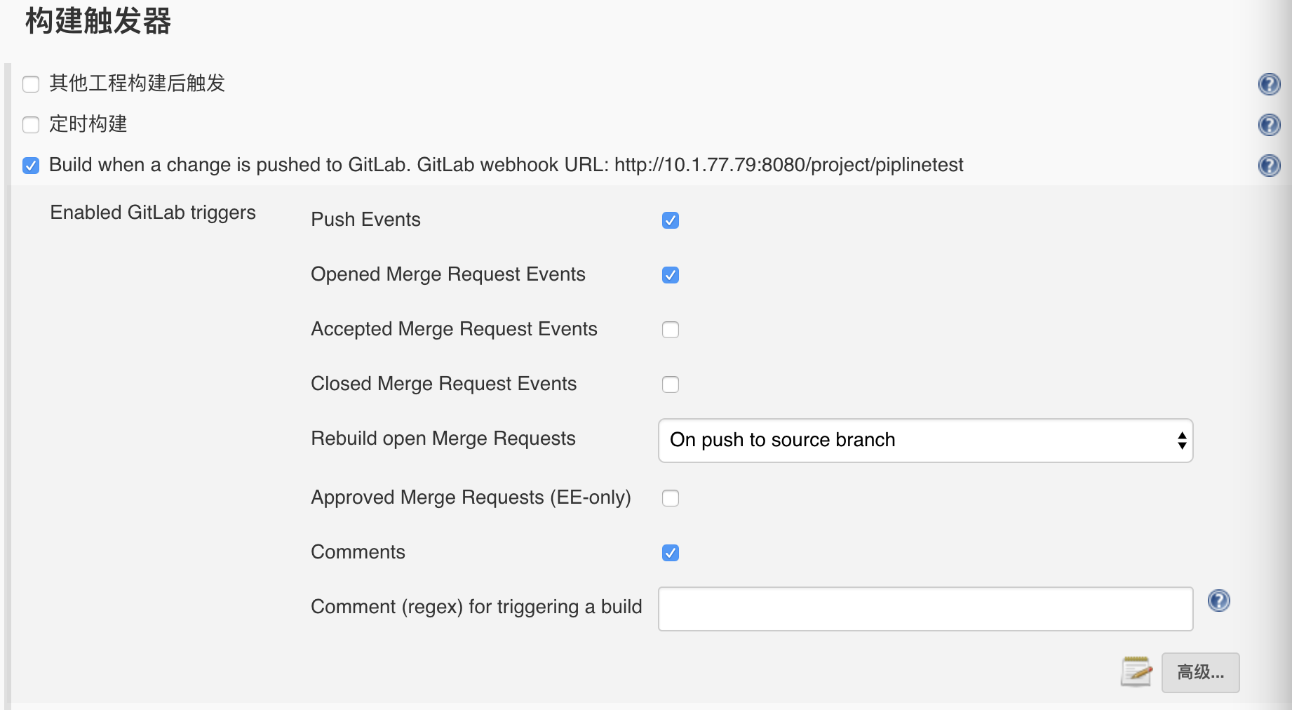 经过这些配置后, 每次有新的Merge Request被创建或更新,都会触发Jenkins的Pipeline,而再由自定义的Pipeline脚本完成具体任务,比如代码扫描任务。